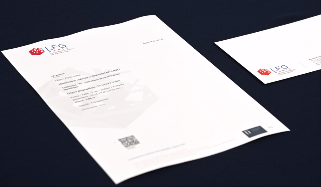 - Des feuillets sur-mesure et adaptables, dédiés aussi bien à l'histoire de votre bijou ou de la gemme, qu'aux données scientifiques de l'analyse