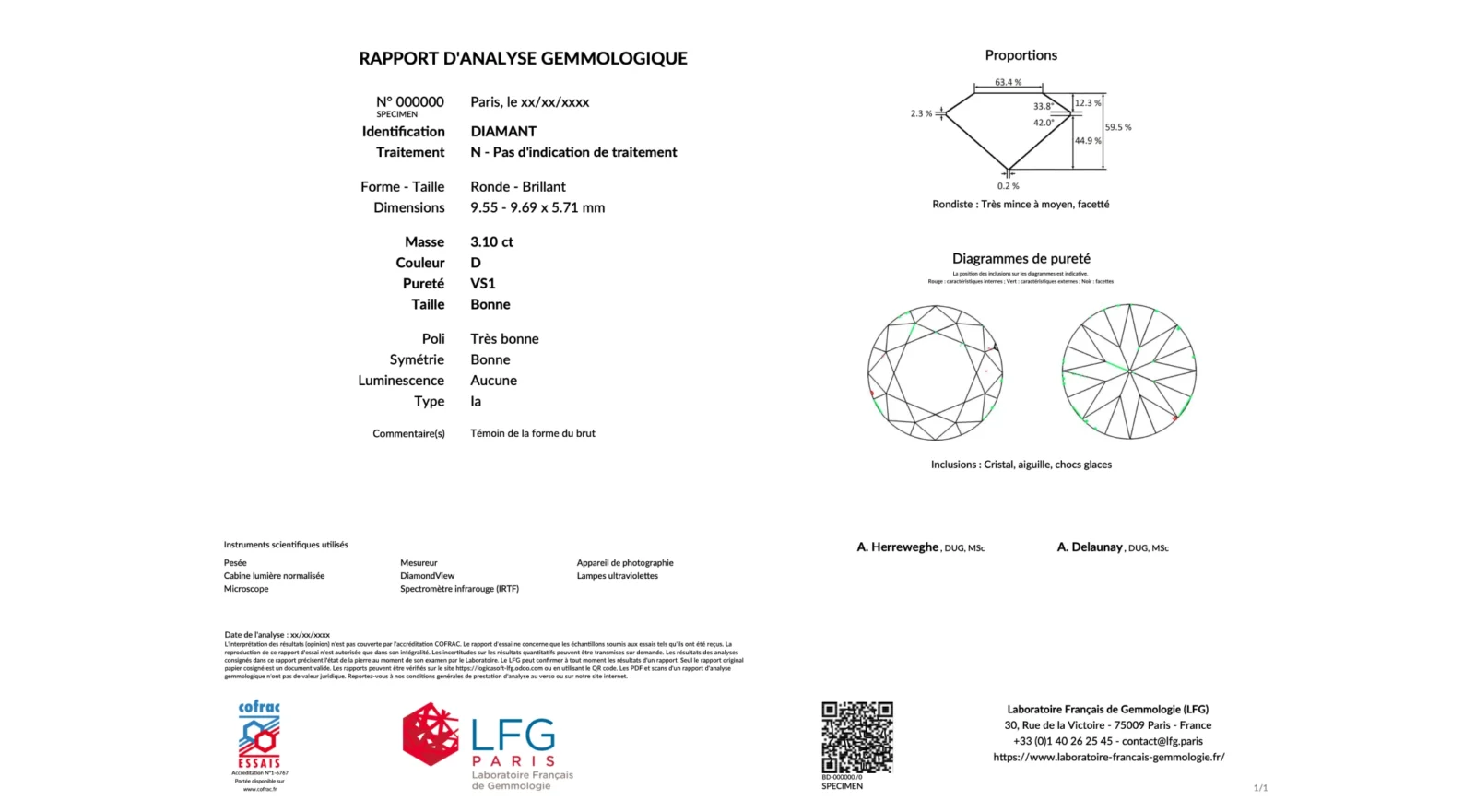 Les schémas de proportions et des inclusions sont également gradés par nos gemmologues.
