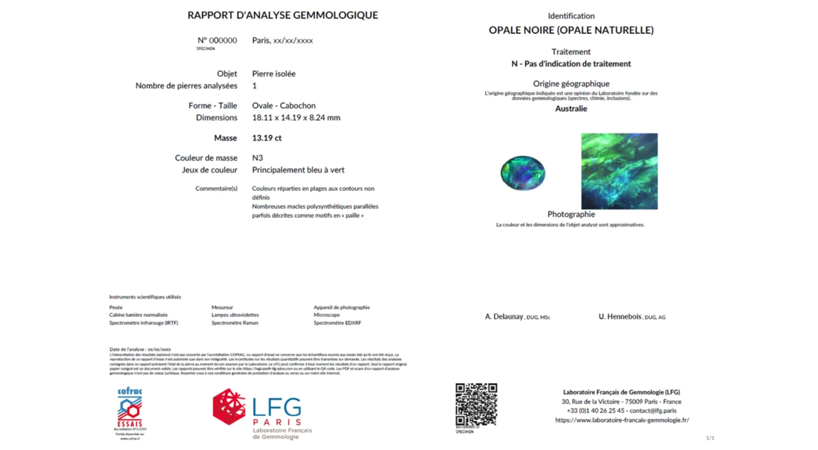 L'analyse complète et le rapport mettant en avant les opales isolées ou serties sur des bijoux.