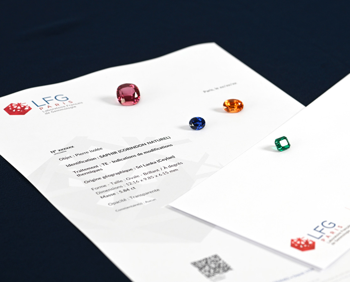 Une feuille A4, regroupant les caractéristiques primaires de votre analyse, livrée avec son enveloppe à la signature du LFG, ainsi qu’un QR code pour accéder aux résultats numériquement.